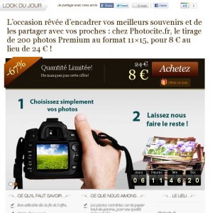Une bonne affaire en terme  developpement de photos si vous allez dans les 3 mois avoir de nombreuses photos à faire tirer : sur le site de deals lookingo , on peut acheter pour 8 euros un bon d’achat donnant droit au tirage de 200 photos au format 11×15 sur le site photocite.com