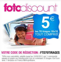 Cette offre est proposé par fotodiscount sous reserve de saisir le code de reduction FTD70TIRAGES dans son panier de commande .