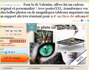 En effet , il est possible d’acheter pour 9 euros un bon d’achat d’une valeur de 28.99 euros permettant d’obtenir un poster sur support alu au format 30×40 aupres du site PosterXXL .