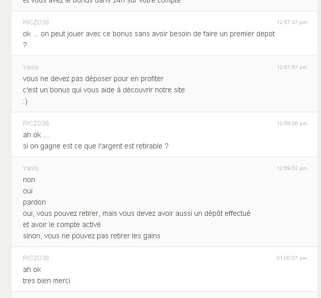 2 – faire un premier dépot sur celui ci (10€ au minimum .. mais on pourra ensuite retirer l’argent deposé en meme temps que les gains )