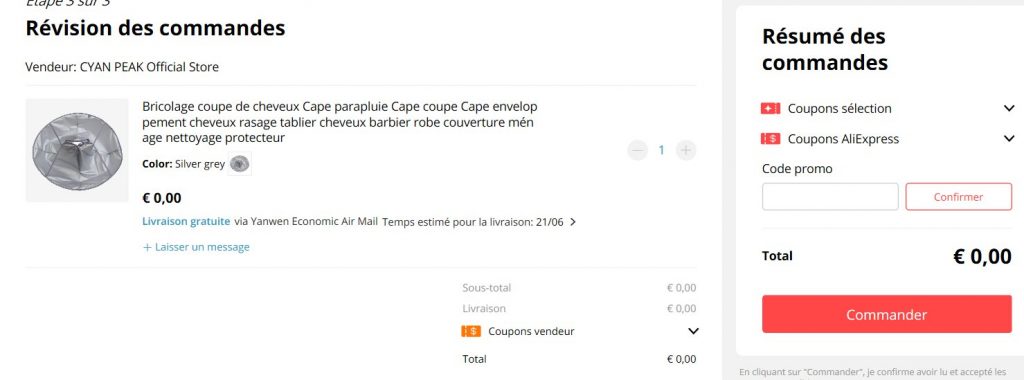 Gratuit : la cape de rasage – coiffage chez Ali Express