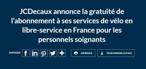 Gratuit pour les soignants : les vélos libre service gérés par JC Decaux durant 1 an