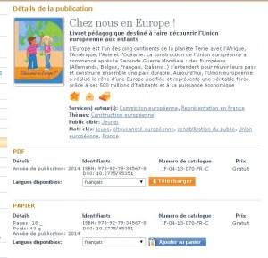 Gratuit sur le site des éditions de l’union europeenne, un petit livre pour enfants pour découvrir l’europe, avec des petits jeux dedans …