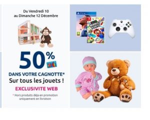 Avec sur le site carrefour, 50% sur la carte de fidélité sur tous les jouets ( sauf ceux qui bénéficient déjà d’une promotion )