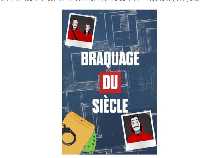 • Un kit d’Escape Game, inspiré de la série “La Casa de Papel” qui transforme votre maison en véritable scène de braquage ! Parviendrez-vous à vous échapper avec le butin à temps ?
