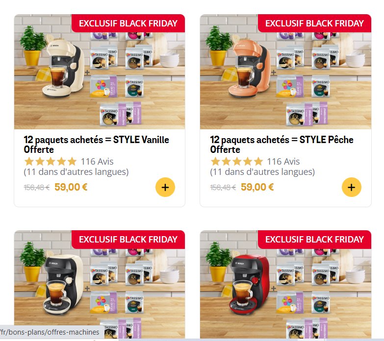 Si vous voulez vous acheter ou offrir une machine multiboisson – café , chocolat , thé – il vous faut profiter des offres à l’occasion du BLACK FRIDAY sur la boutique officielle TASSIMO !!