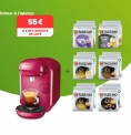 A noter qu’au meme prix on peut aussi choisir un pack avec une Tassimo Happy .. sinon à 65€ un pack Tassimo Suny avec 10 paquets ..