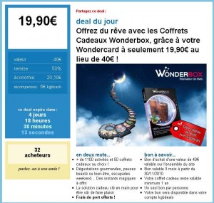 20 euros d’economie sur l’achat d’un coffret cadeau wonderbox