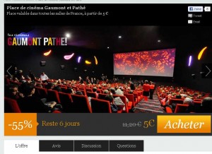 Vous aimez aller au cinema ? offre qui vous interessera sur le site lookingo .. En effet jusqu’au 5 décembre, on peut acheter pour 5 ou 5.50 euros des places de cinema valables dans les gaumont pathé de France ..