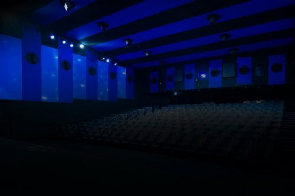 Salle de cinema dans lesquelles des panneaux led lateraux permettent d’avoir une immersion dans le film , avec une projection en 4K , un son Dobly Atmos , mais aussi des FAUTEUILS CLUB INCLINABLES RANGÉES CINTRÉES