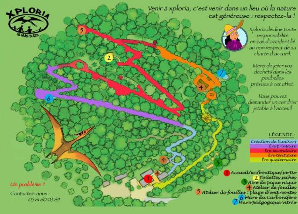 Xploria est un parc forestier destiné à la famille dans lequel on part à la découverte du vivant sur 3 hectares .. Avec aussi des representations d’animaux préhistoriques … Des ateliers de fouilles pour les enfants