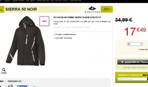 Une veste noire de la marque de l’enseigne disponible dans les tailles allant du 36 au 46 ..