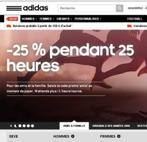25% de remise sur la boutique en ligne Adidas le 22 octobre 2013