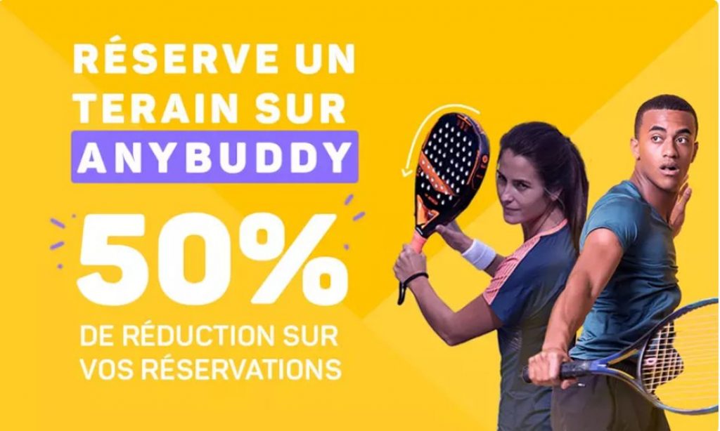 Anybuddy : 10 ou 20€ de réduction sur les reservations de terrains tennis , paddel , foot ..