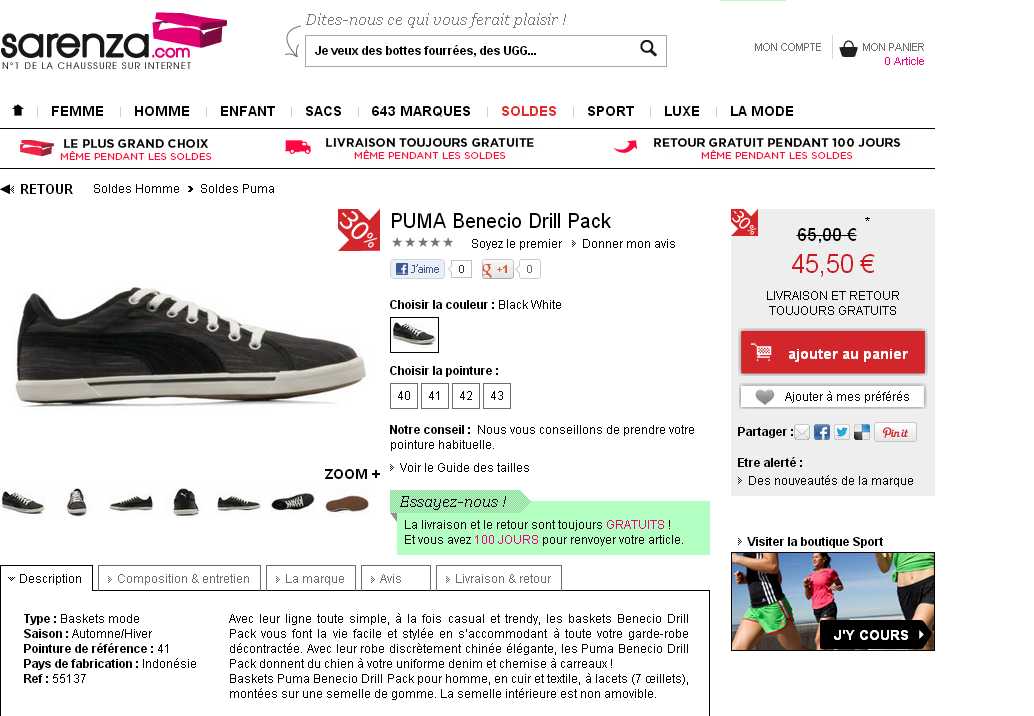 Encore des baskets à prix assez interessants dans les soldes amazon : les Puma Benecio Drill Pack sont en effet vendues 26 euros port inclu ..
