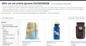 du 18 mai au 10 juin 2018 , on peut avoir 20% de réduction en plus sur plus de 6000 articles classés » outdoor » ou « plein air »