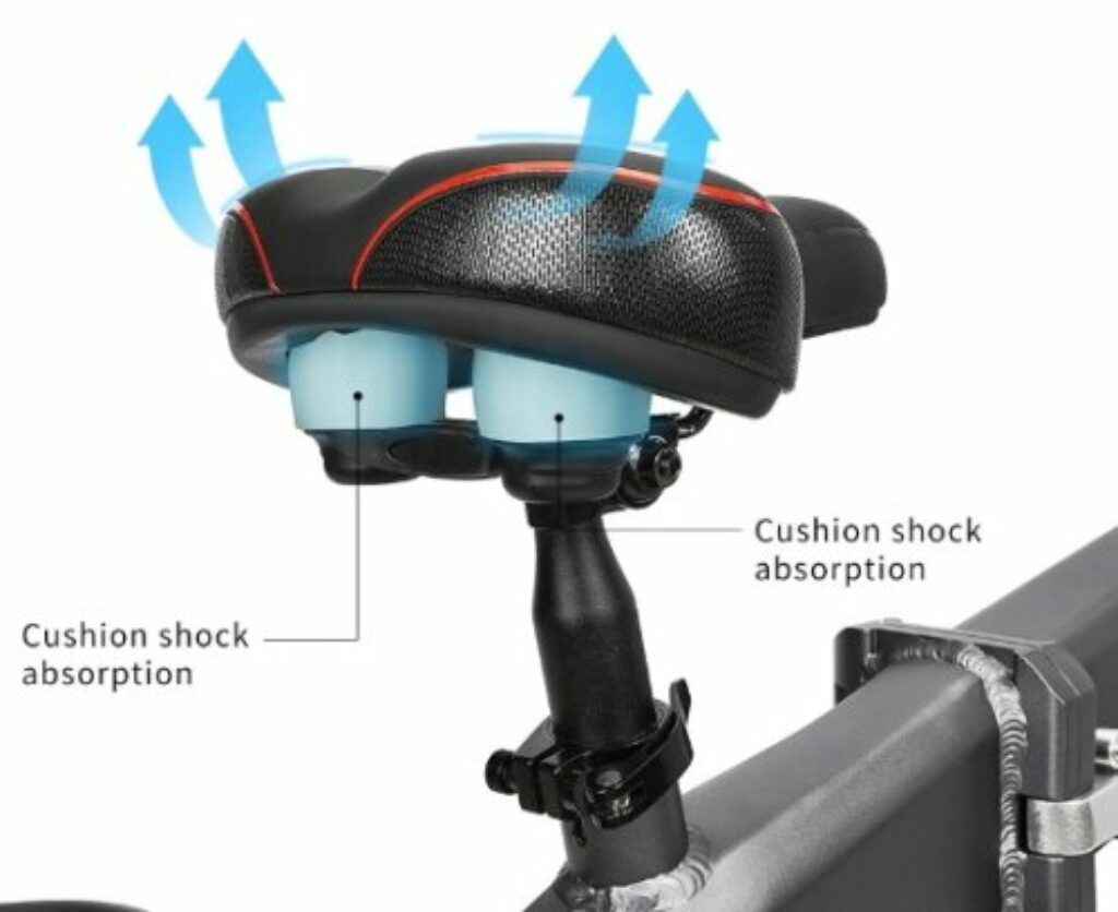 Le DrveTion BT20 possede des amortisseurs à l’avant et pour plus de confort la selle elle meme comporte un systeme d’amortissement ..