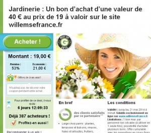 C’est l’époque ou on commande à jardiner .. Si vous avez la main verte une bonne offre pour vous sur groupon : pour 19 euros on peut acheter un bon d’une valeur de 40 à utiliser chez Willemse .. le site de jardinage de vente par correspondance ..
