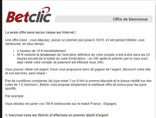 Bon plan paris sportifs : 1er pari sans aucun risque chez betclic car entierement remboursé si perdu … toujours dispo