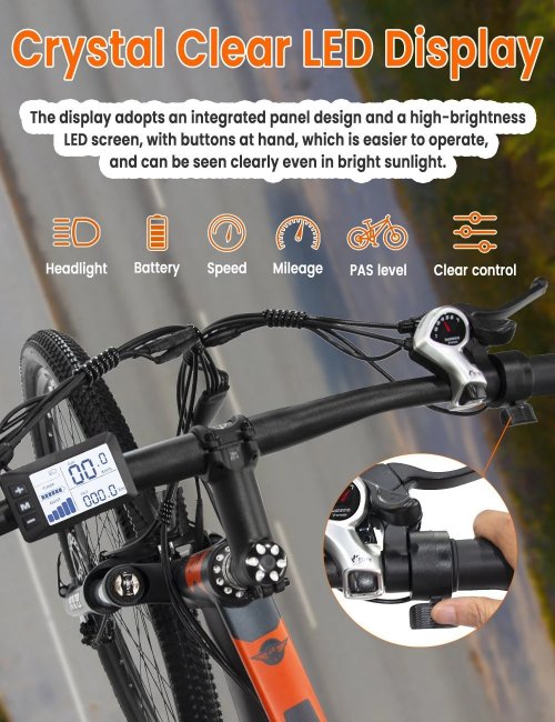 Mais aussi par l’ecran de controle .. et bien sur par les caracteristiques : des roues de 29 pouces, 21 vitesse manuelles , un moteur de 750 watts et une vitesse maximale jusqu’à 50kms/h , batterie 48V/15Ah ..