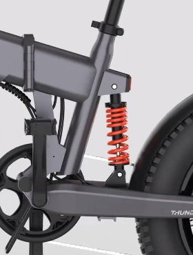 Le vélo électrique Thunder 1FT the la marque 5th wheel , est de type fatbike pliant avec des roues de 20 pouces de diametre et des pneus de 4 pouces de largeur .. Il est équipé d’un moteur de 250watts , mais ce qui est intéressant c’est qu’il offre une suspension intégrale et pour un prix pas élevé du tout