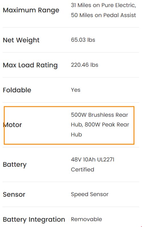 La fiche technique du Thunder 1FT sur geekbuying indique que ce vélo possede un moteur de 250watts (avec une puissance en créte de 500watts ) .. Cependant sur la fiche sur le site officiel du constructeur , il est indiqué que le vélo aurait un moteur de 500watts avec une puissance en crete de 800 watts ..