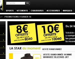 Sur le site go sport, et meme en magasin, il y a toujours des produits en destockage .. Mais en plus de cela on peut utiliser des bons de reduction qui donne 8 euros de remise pour 40 d’achats ou 10 euros pour 60 euros ..