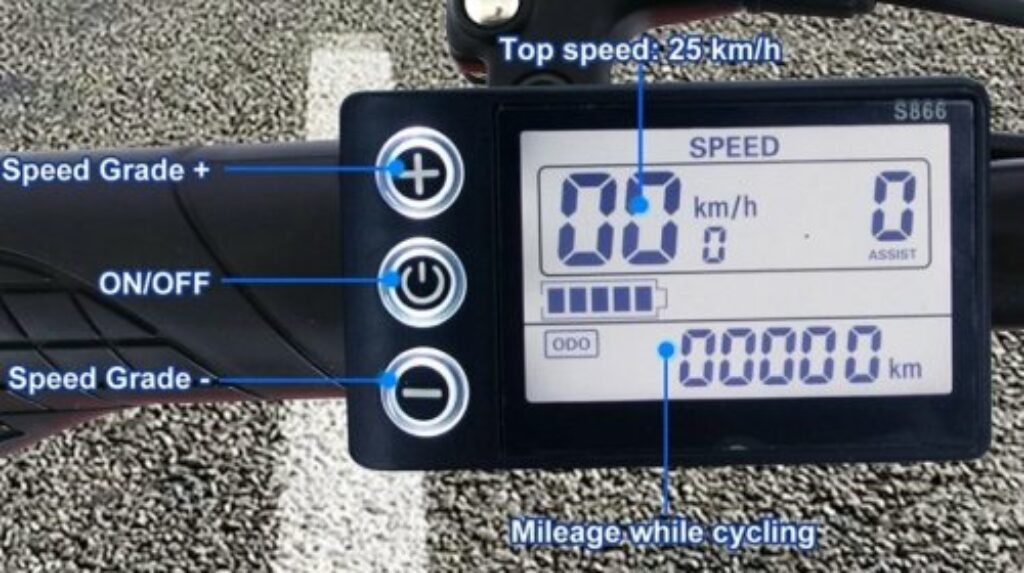 L’écran du OT13 affiche de nombreuses informations , et possede des gros boutons permettant de changer facilement les modes d’assistance.