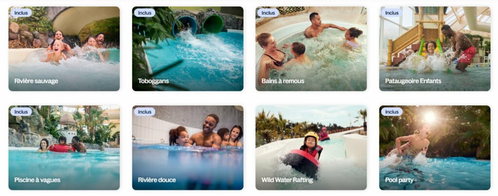 - Piscine à vagues : plongez dans une ambiance océanique avec des vagues animées.