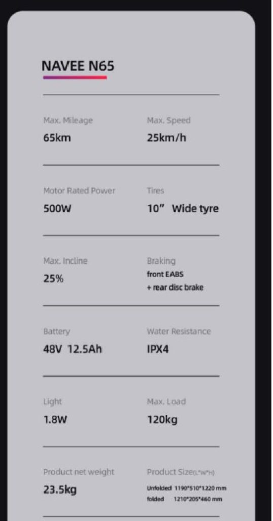 La trottinette electrique Navee N65 fait parti de l’ecosysteme Xiaomi , elle utilise d’ailleurs l’application Xiaomi Youpin …