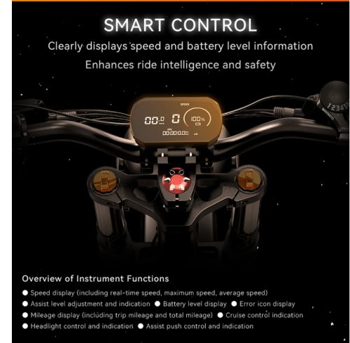 Le Duotts F20 est un vélo électrique avec un vrai look de moto .. Un vélo de 20 pouces avec des gros pneus de 4 pouces , un moteur de 750 watts, une batterie avec une capacité énorme de 52V 27Ah soit donc de 1404 Wh ..
