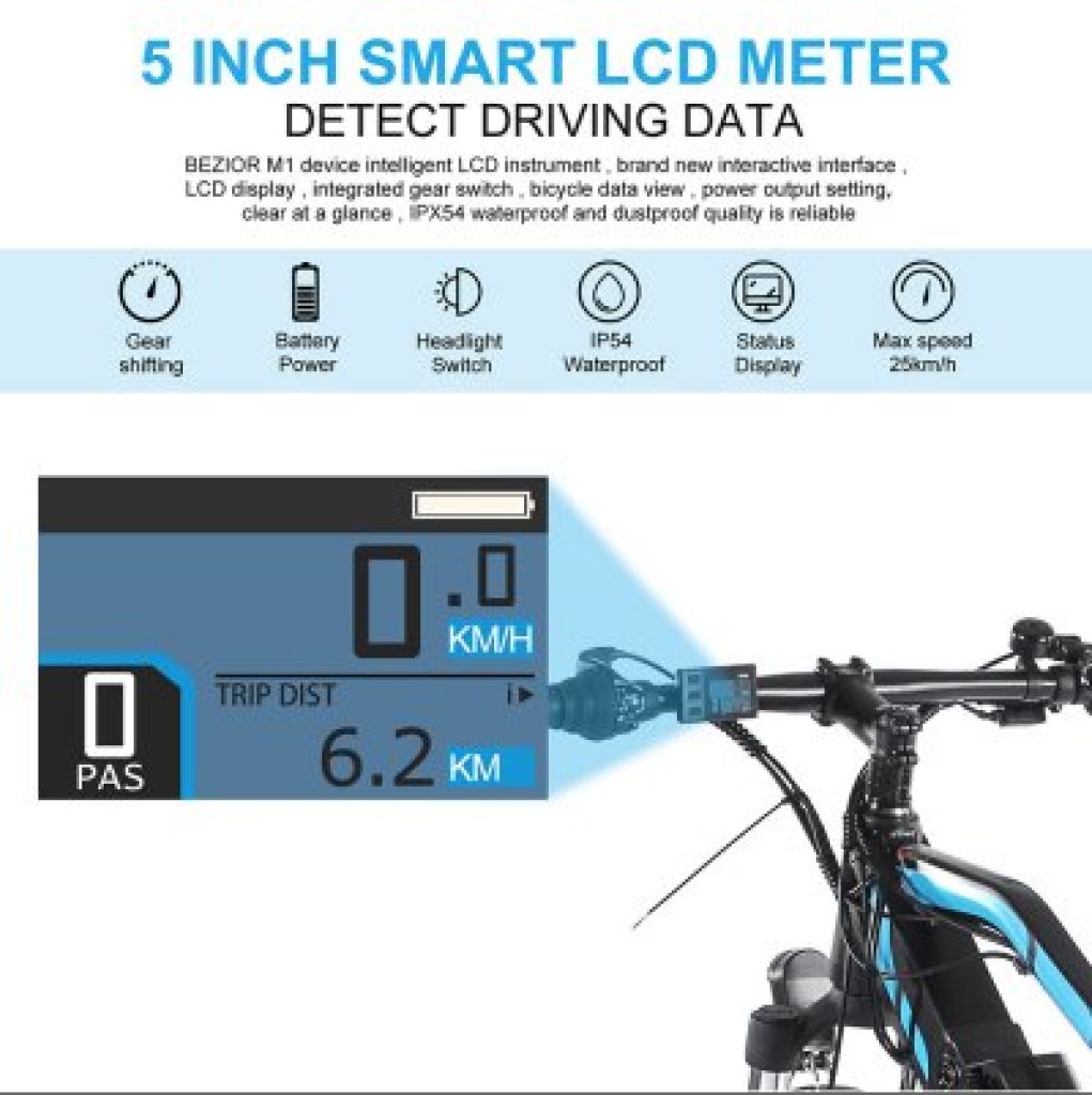 Le Bezior M1 c’est un vélo électrique disposant d’un moteur de 250 watts , et qui respecte completement les normes de l’homologation en Europe .. A savoir seulement un mode assistance avec une vitesse maximale de 25km/h .. Il est équipé de roues de 27.5 pouces , 7 vitesses et à une autonomie jusqu’à 80 kms ..