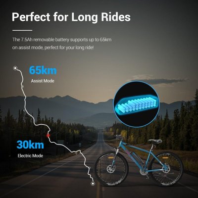 Le vélo électrique Eleglide M1 est équipé d’une batterie pas trop puisssante de 36V 7.5Ah ( 270wh ) … Son autonomie pourrait aller jusqu’à plus de 60kms cependant suivant l’usage que l’on en fait ..