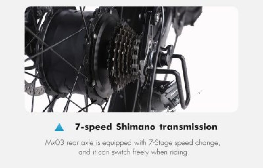 Il possede par ailleurs 7 vitesses manuelles avec un derailleur shimano.