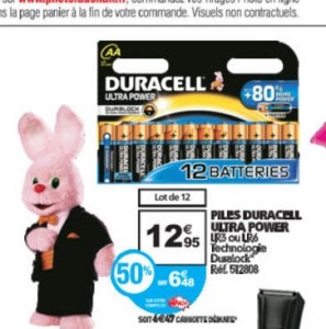 les jouets ont été livrés et il faut des piles ? Bonnes affaires dans les hyper auchan sur des piles hautes performances duracell : les Duracell Ultra power en AA ou AAA font l’objet de 50% de crédit sur la carte de fidélité .. Vendues 12.95 les 12 , elles reviennent donc à 6.48 euros ..