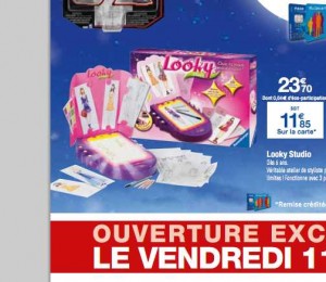 Tout comme le bon plan permettant d’obtenir 2 kits creatifs « artistic’s Art à 1 euro jusqu’au 5 novembre (voir l’article : 1 euro les deux jeux créatifs « Fantastic atelier n° d’art » ) , du 7 au 12 novembre , il sera possible de la meme façon d’obtenir pour 1 euro 2exemplaires de « Looky Studio » de ravensburger .