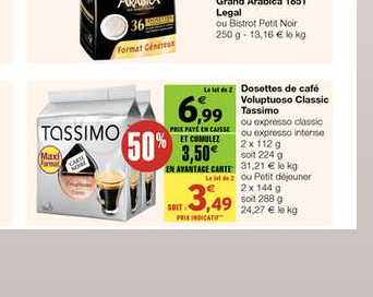 Cette réduction avait déjà été faite cet été chez Intermarché. Ca fait 0,109€/capsule, c’est le prix le plus bas que j’ai pu trouver jusque là sur des dosettes Tassimo.