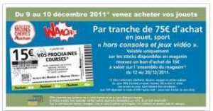 Auchan : 15 euros de bon d’achat par tranche de 75 d’achats en jouet les 9 et 10 decembre