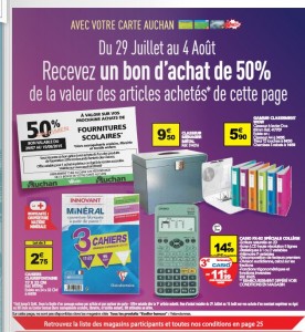 Pour ne pas avancer trop d’argent on peut faire en premier l’offre 50% en bons d’achats et avec le bon obtenu régler les fournitures scolaires de l’offre « le 2eme 100% remboursé « …