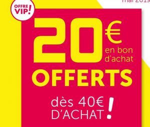 Du 24 au 26 mai , pour une note d’au moins 40€ en caisse on récupere un bon d’achat de 20€ à utiliser dans le meme magasin..