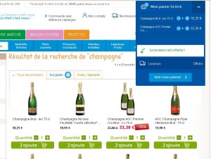 Sur toupargel on peut donc voir un pack de deux bouteilles de champagnes à 33.3 euros et on peut voir des bouteilles à l’unité à 18.25 euros …