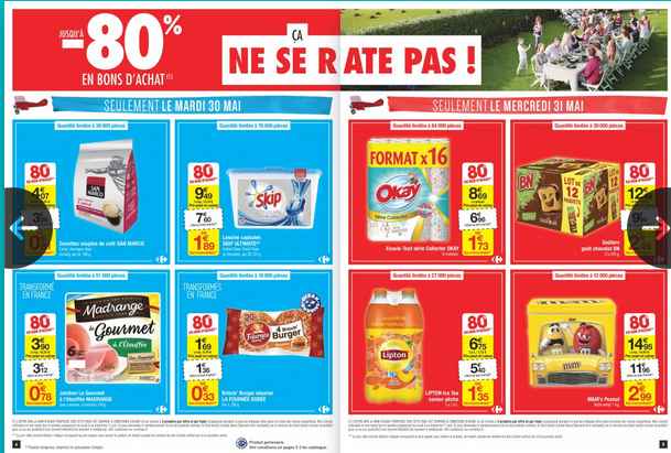Bonne affaire dans les hyper carrefour du 30 mai au 2 juin , avec une opération qui rembourse à 80% 16 produits sur la période ..