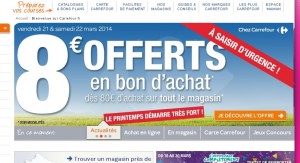 Carrefour : 8 euros de bons d’achats offerts pour 80 euros de course les 21 – 22 mars