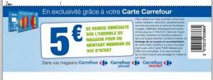 Un nouveau bon de reduction à telecharger et valable dans les hypermarchés carrefour mais aussi dans les supermarchés carrefour market : Il s’agit cette fois ci d’un bon de 5 euros de reduction immediate pour 50 euros d’achats ..