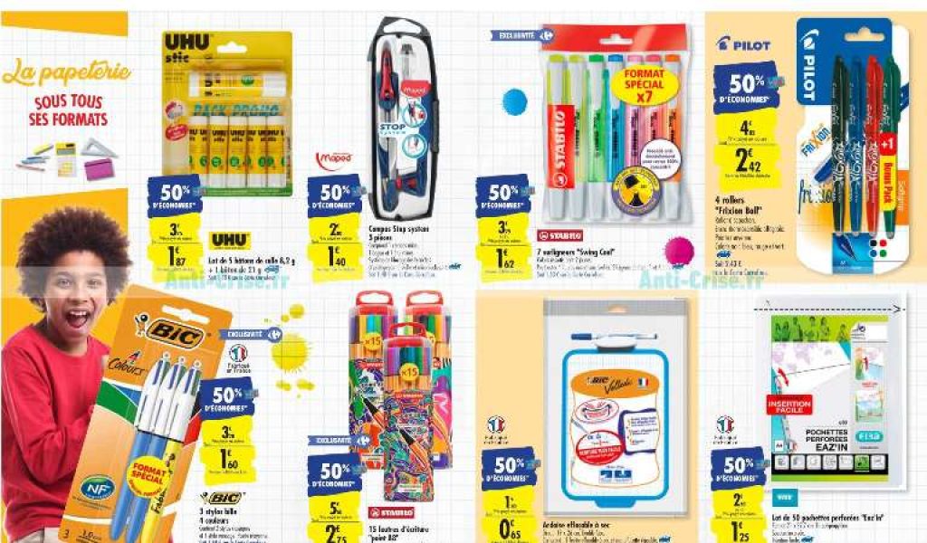 Catalogue Carrefour 23-29 juillet : 70% sur la carte , 50% sur des fournitures scolaires