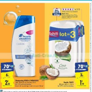Dans ce prospectus Carrefour Hyper , on peut donc voir jusqu’à 70% de crédit sur la carte de fidélité sur certains produits : 70% sur de la creme solaire Nivea par exemple , shampoing Head and Shoulder , sur du gel douche Tahiti