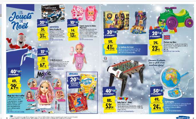 Quelques bonns affaires jouets , aussi avec notamment du crédit sur la carte : 50% sur un globe terrestre , 40% sur un baby foot , 40% sur une tete à coiffer