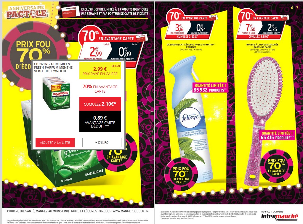 Catalogue très interessant dans les hyper-intermarché du 6 au 11 octobre, avec jusqu’à 70% de crédit sur la carte de fidelité et des produits gratuits par optimisation