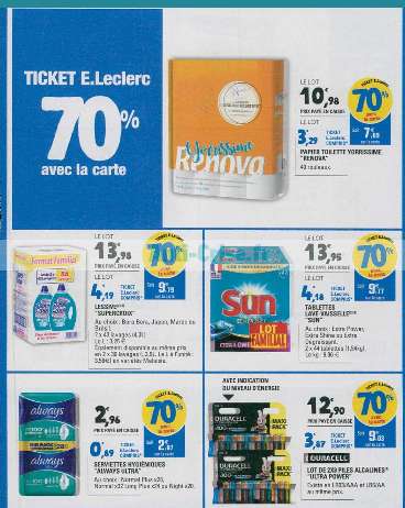 Avec de nombreux articles bénéficiant de remise sous la forme de ticket leclerc, avec jusqu’à 70% sur certains produits .. Notamment du papier toilette , de la lessive, des piles