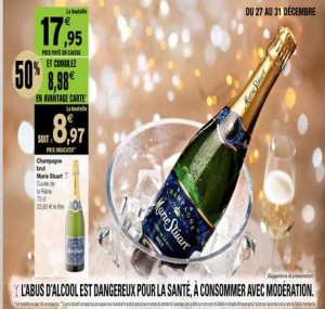 Champagne à moins de 9 euros la bouteille du 27 au 31/12 chez intermarche